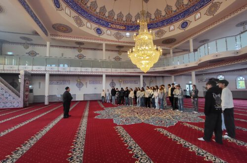 Moscheebesuch in Aalen: Begegnung mit dem Islam Am Dienstag, den 18. November 2025 besuchten wir, die Ethikgruppe der Klasse 8 und 9 des LMGs die Ditib Moschee in Aalen. Dort wurden wir herzlich empfangen und durch die wichtigsten Bereiche geführt. In der Eingangshalle hängen einige bedeutungsvolle Gemälde, auf denen beispielsweise Mekka und Medina dargestellt sind. Mekka in Saudi-Arabien gilt als…