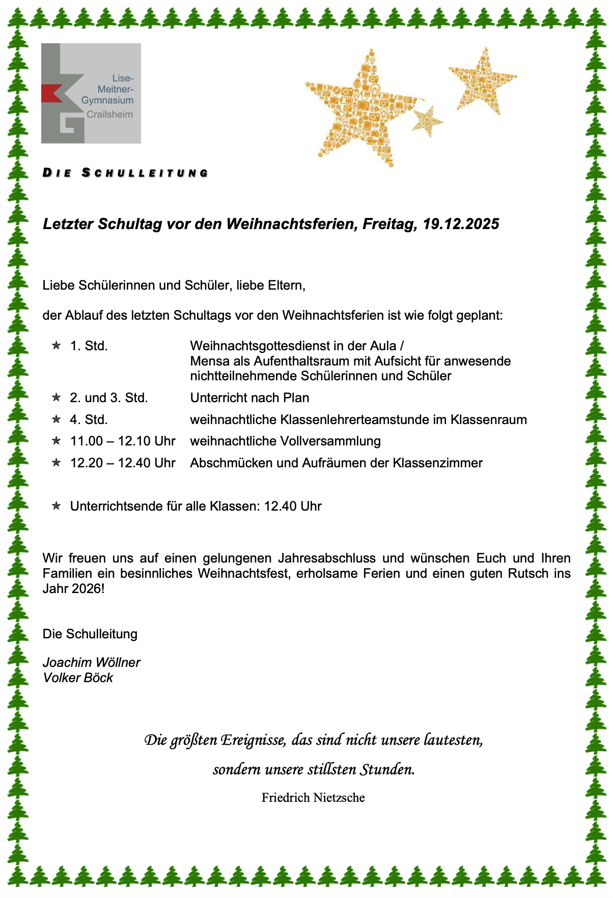 Letzter Schultag vor den Weihnachtsferien