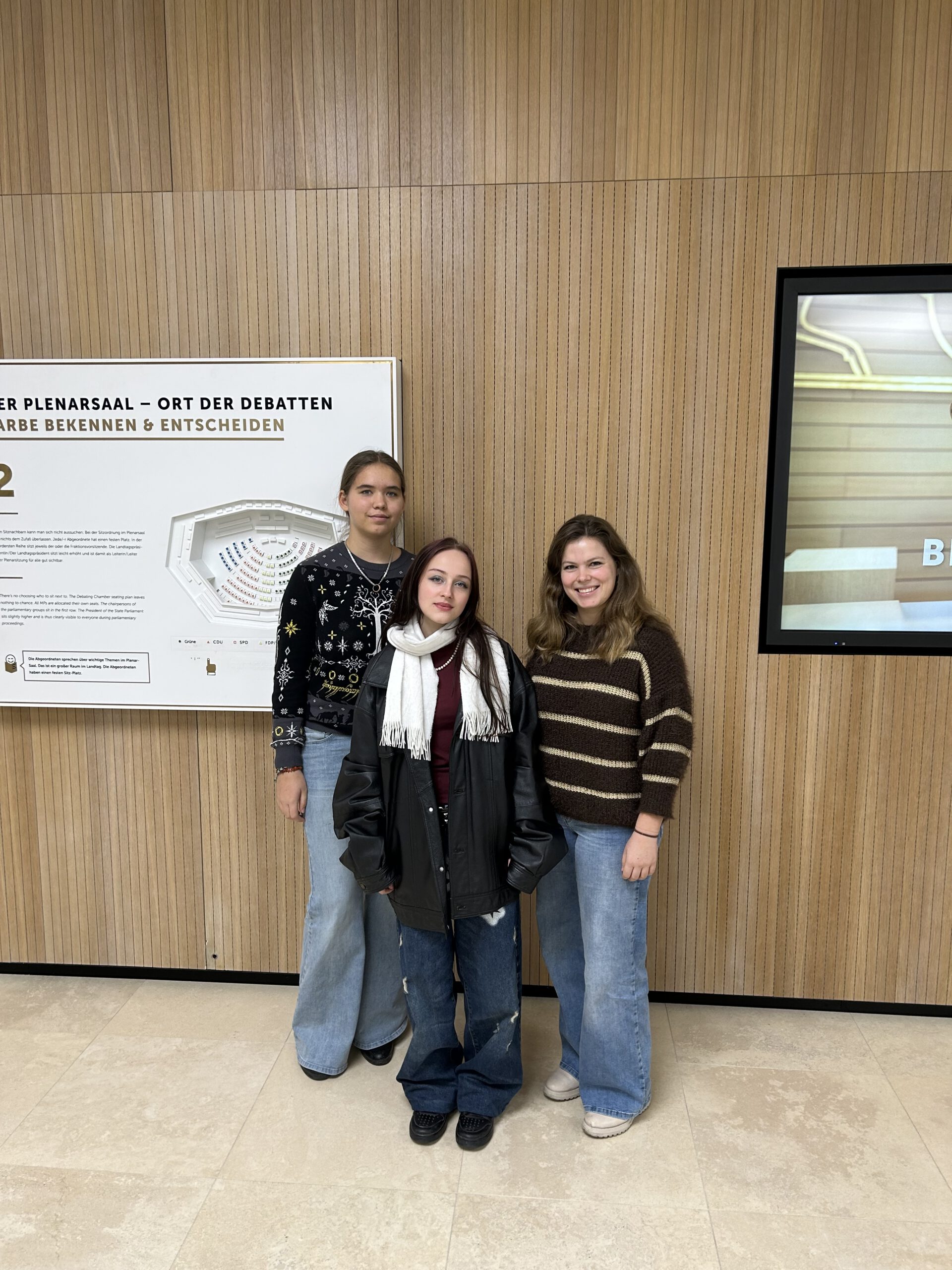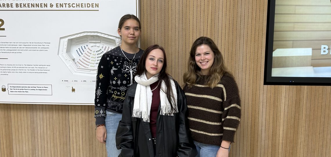Laureen Brehm, Ronja Stiefelmaier und Alena Schlenvoigt besuchen im Namen der SMV den Landtag