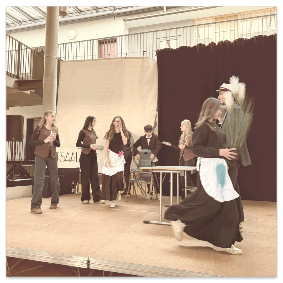 Am Lise-Meitner-Gymnasium Crailsheim ist das fächerübergreifende Theaterprojekt seit Jahren fest im Schulcurriculum verankert: Alljährlich präsentieren alle achten Klassen eine Bühnenproduktion. In Kooperation der Fächer Deutsch, Musik und Kunst entstehen so Aufführungen, die Unterrichtsinhalte mit Teamgeist, organisatorischem Geschick und künstlerischer Kreativität verknüpfen. Die Klasse 8b wurde bei ihrer Arbeit von den Fachlehrkräften Svenja Hartmann (Deutsch, Projektleitung), Katharina Färber (Musik), Oliver Waibel (Kunst) sowie Lars Saltuari (Theaterpädagogik) eng begleitet und unterstützt.