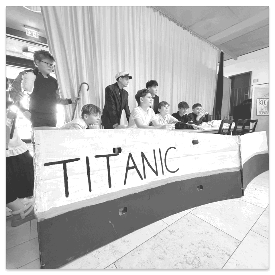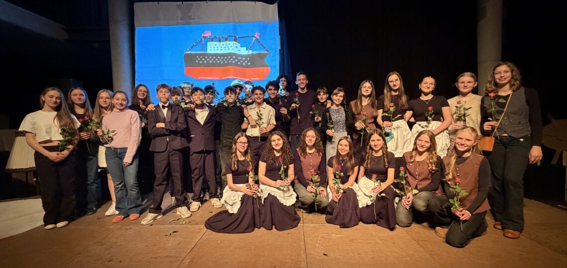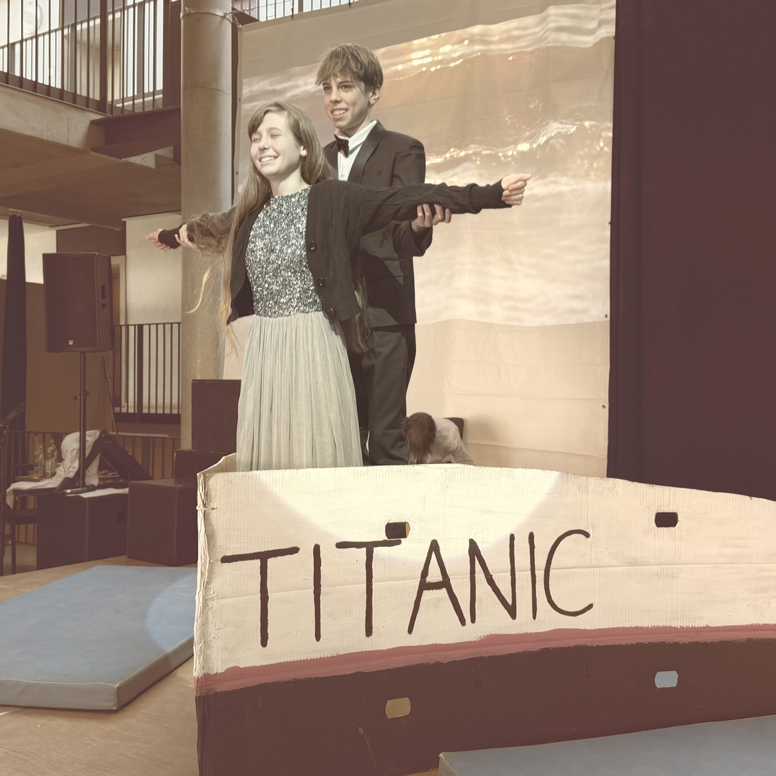 Was wäre, wenn sich Geschichte korrigieren ließe? Wenn eine der berühmtesten Liebesgeschichten der Filmwelt nicht im eisigen Atlantik endete? Mit genau diesem Gedanken spielte die Klasse 8b des Lise-Meitner-Gymnasiums in ihrem fächerübergreifenden Theaterprojekt „Titanic: Mord auf dem Atlantik“ und präsentierte eine eigene, überraschend spannende Neuinterpretation des berühmten Stoffes – mit Zeitreise, Kriminalfall und großer Liebe.